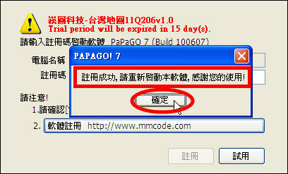 請將 PaPaGO_7.exe 複製至安裝資料夾 C:\Program Files\Maction\PaPaGO! 7 資料夾下取代原檔案即可