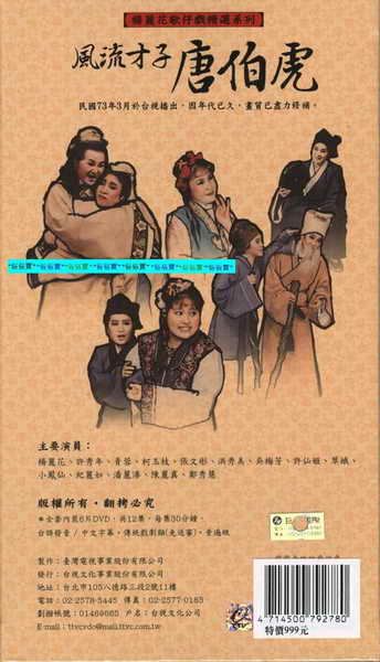 楊麗花歌仔戲精選:風流才子唐伯虎 (民國73年台視年度大戲,迴響熱烈,值得典藏! )(dvd6片裝)